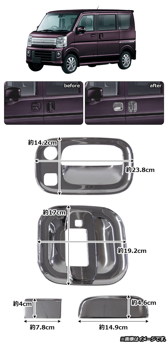 AP ドアハンドルインナーカバー 鏡面シルバー ABS製 AP-XT325-KSI 入数:1セット(8個) ニッサン NV100クリッパー/NV100クリッパーリオ DR17V/DR17W 2015年03月〜