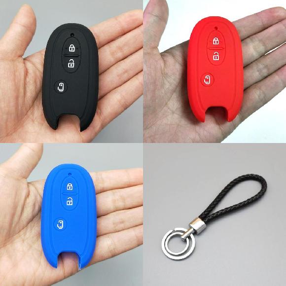 キーカバー 3ボタン キー 適用: スズキ スペーシア カスタム コンパクトカー MPV 自動車 ドア リモート シリコン ラバー キー フォブ カバー ケース ブラック〜キーチェーン AL-II-4556 AL