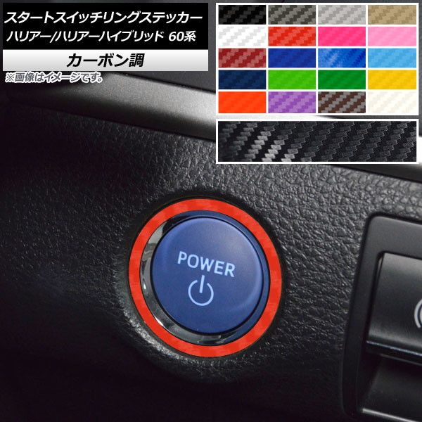 スタートスイッチリングステッカー カーボン調 トヨタ ハリアー/ハリアーハイブリッド 60系 2013年12月〜2020年05月 選べる20カラー AP-CF4168 カラー: ブラック ホワイト レッド ブルー イエロー グリーン オレンジ パープル ピンク ネイビー ブラウン ボルドー クリア ゴールド シルバー ガンメタリック マゼンタ ダークグリーン メタリックブルー ライトブルー