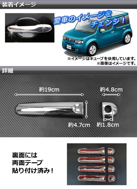 AP メッキドアハンドルカバー 鏡面仕上げ インテリジェントキー非対応 AP-DHC-CUBE 入数:1セット(8個) ニッサン ノート E12,HE12,NE12 後期 2016年11月〜