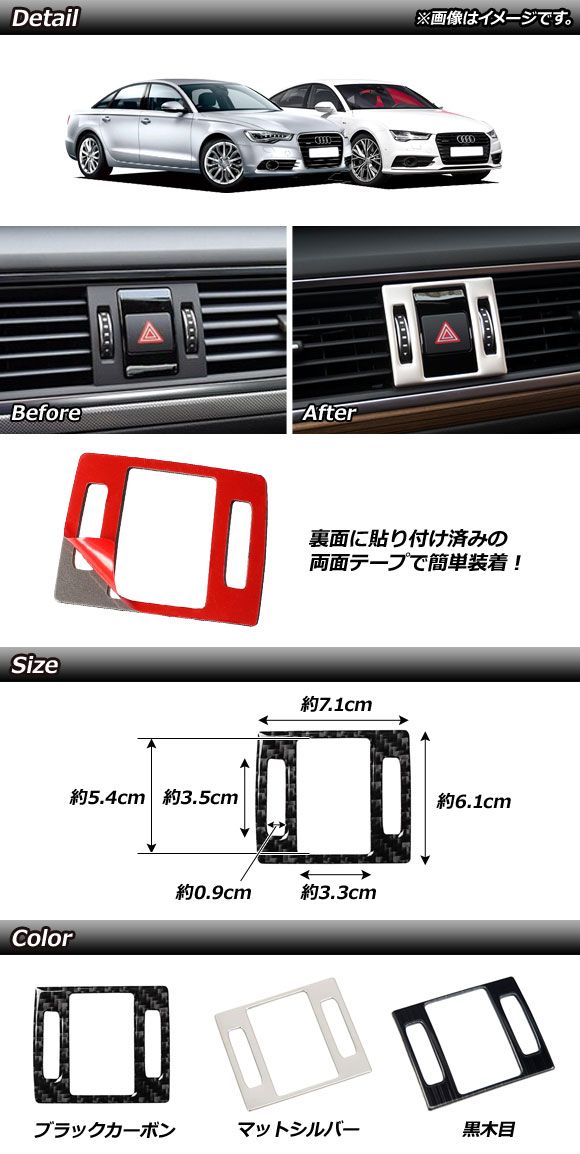 ハザードスイッチカバー アウディ A6 C7 2011年08月〜2019年03月 マットシルバー ステンレス製 AP-IT595-MSI