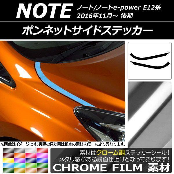 ボンネットサイドステッカー ニッサン ノート/ノートe-power E12系 後期 2016年11月〜 クローム調 選べる20カラー AP-CRM3267 入数:1セット(2枚)