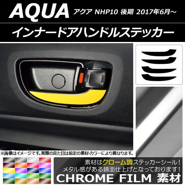 インナードアハンドルステッカー クローム調 トヨタ アクア NHP10 後期 2017年06月〜 選べる20カラー 入数:1セット(4枚) AP-CRM3390