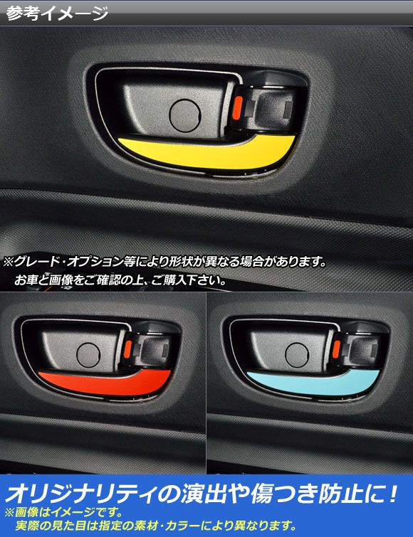 インナードアハンドルステッカー クローム調 トヨタ アクア NHP10 後期 2017年06月〜 選べる20カラー 入数:1セット(4枚) AP-CRM3390 カラー: ブラック ホワイト レッド ブルー イエロー グリーン オレンジ パープル ピンク ネイビー ブラウン ボルドー ゴールド シルバー マゼンタ ダークグリーン ライトグリーン ライトブルー ローズゴールド シアン