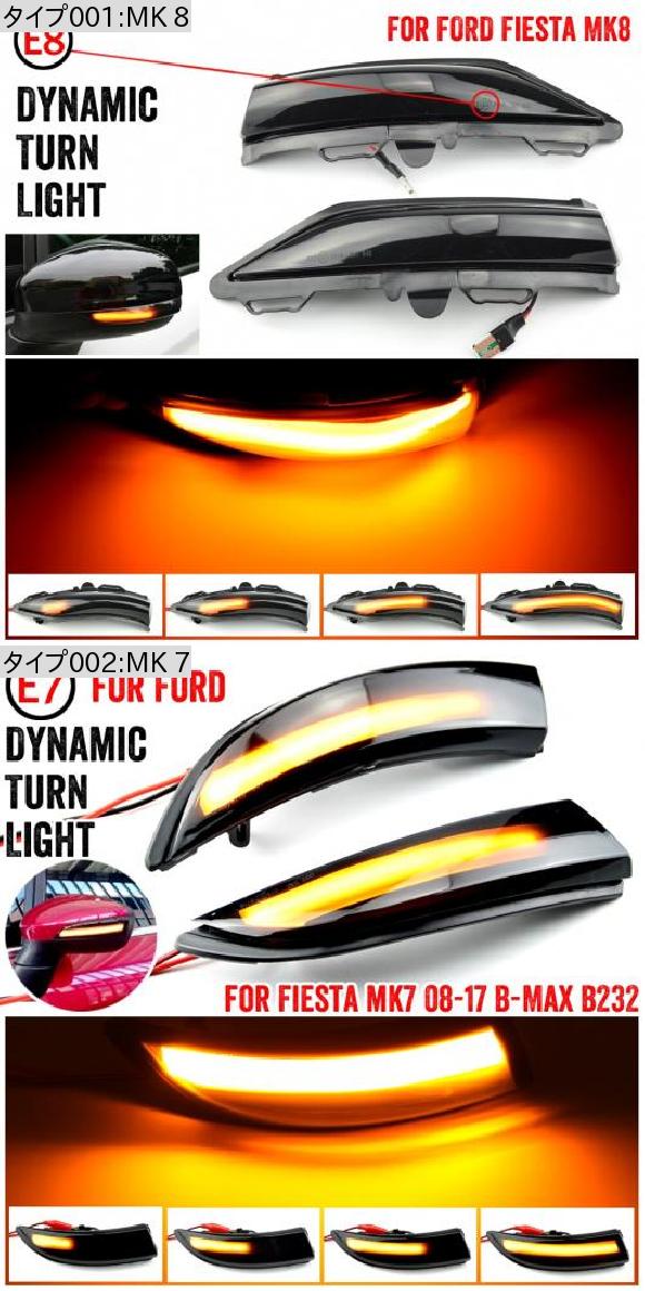 AL 2ピース LED サイド ウイング バックミラー ミラー ダイナミック インジケーター フロー ウインカー ウインカー リピーター ライト 適用: フォード/FORD フィエスタ MK8 19 + MK7 MK 7 AL-JJ-6804