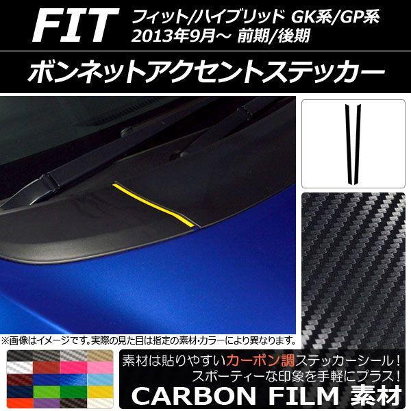 ボンネットアクセントステッカー カーボン調 ホンダ フィット/ハイブリッド GK系/GP系 前期/後期 2013年09月〜 選べる20カラー 入数:1セット(2枚) AP-CF2257