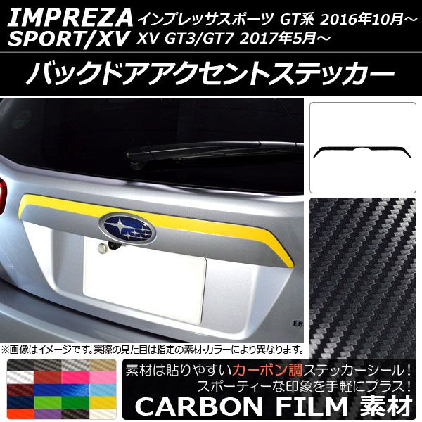 バックドアアクセントステッカー カーボン調 スバル インプレッサスポーツ/XV GT系 2016年10月〜 選べる20カラー AP-CF2085 カラー: ブラック ホワイト レッド ブルー イエロー グリーン オレンジ パープル ピンク ネイビー ブラウン ボルドー クリア ゴールド シルバー ガンメタリック マゼンタ ダークグリーン メタリックブルー ライトブルー