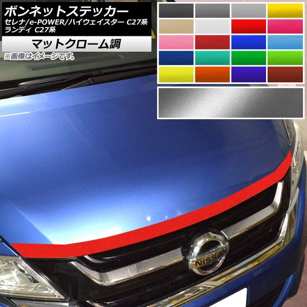 AP ボンネットステッカー マットクローム調 ニッサン スズキ セレナ/e-POWER/ハイウェイスター ランディ C27系 選べる20カラー AP-MTCR3964