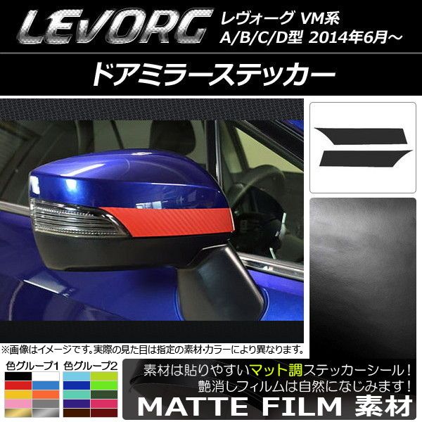 ドアミラーステッカー マット調 スバル レヴォーグ VM系 A/B/C/D型 色グループ1 入数:1セット(2枚) AP-CFMT1499 色グループ1: ブラック ホワイト レッド ブルー イエロー オレンジ ピンク グレー ゴールド シルバー