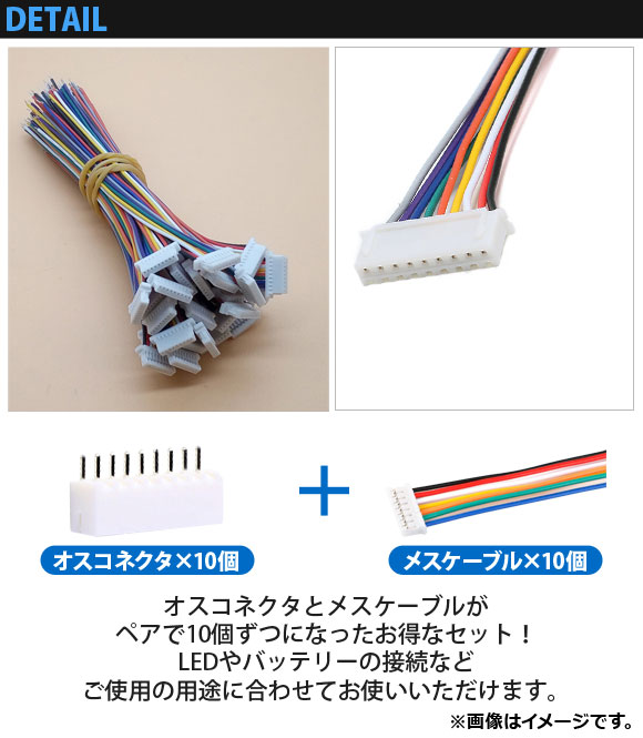 オスコネクタとメスケーブルがペアで10個ずつになったお得なセット!