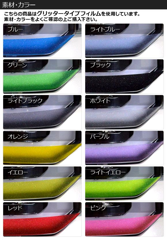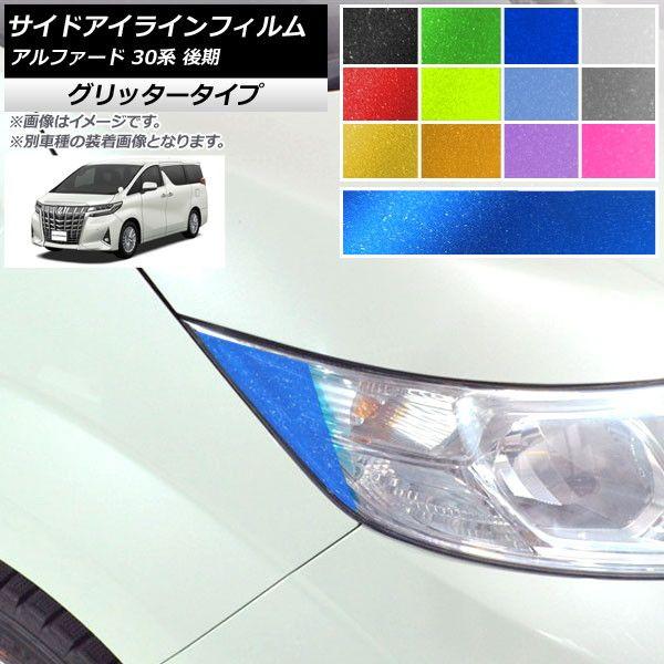 サイドアイラインフィルム グリッタータイプ トヨタ アルファード 30系 後期 2018年01月〜 選べる12カラー 入数:1セット(2枚) AP-YLGL233 カラー: ブラック ホワイト レッド ブルー イエロー グリーン オレンジ パープル ピンク ライトイエロー ライトブルー ライトブラック