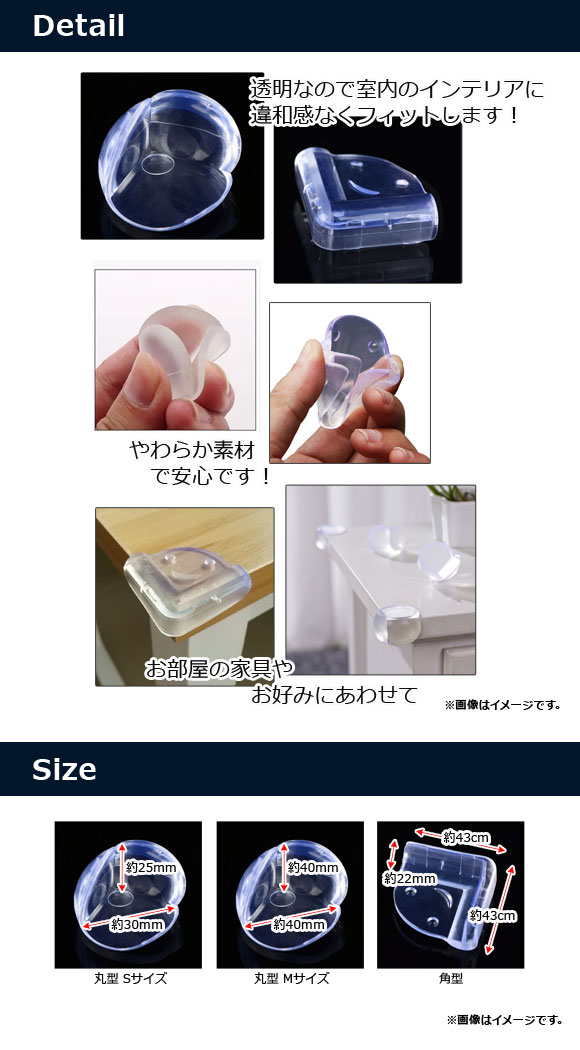 机やテレビ台などのとがった角に取り付け、ケガやキズを防止する安全保護グッズです!
