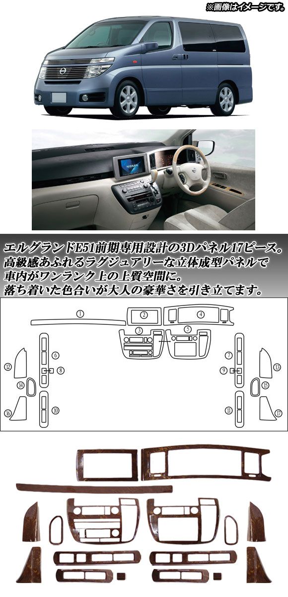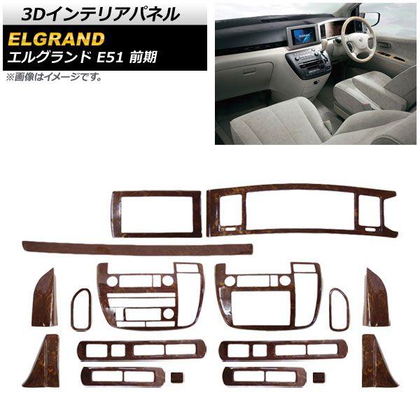 3Dインテリアパネル 日産 エルグランド E51 前期 2002年05月〜2004年07月 茶木目 入数:1セット(17個) AP-3D-ELG02-BRWD
