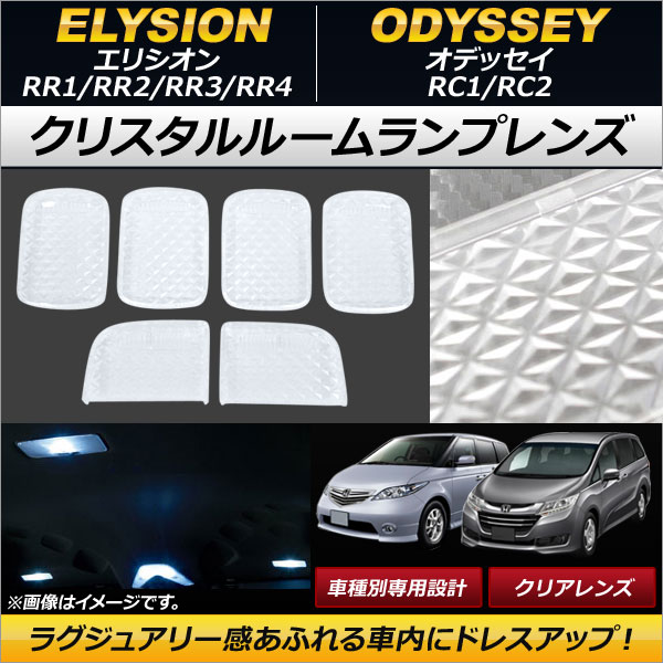 クリスタルルームランプレンズ ホンダ エリシオン RR1/RR2/RR3/RR4 クリア 入数:1セット(6個) AP-RU082-CL