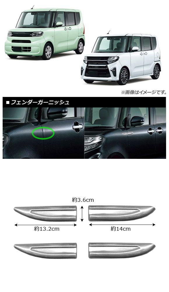 フェンダーガーニッシュ ダイハツ タント/タントカスタム LA650S/LA660S 2019年07月〜 鏡面シルバー ステンレス製 入数:1セット(4個) AP-XT481 フェンダー サイドフェンダーガーニッシュ フェンダーカバー サイドフレームガーニッシュ サイドフレーム ガーニッシュカバー ダクトカバー エアフローダクト ダミーダクト エアーダクト フェンダーダクト サイドダクト ダクト サイド フロント リア リヤ フレーム カバー ガーニッシュ リム トリム 4482 ステンレス ステン 鋼 鏡面 シルバー 銀 silver クローム chrome メッキ メッキパーツ メッキカバー プロテクト プロテクター 傷予防 傷付き防止 外装 外装パーツ パーツ エクステリア ドレスアップ カスタム カスタマイズ
