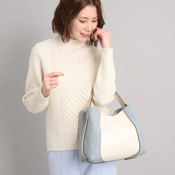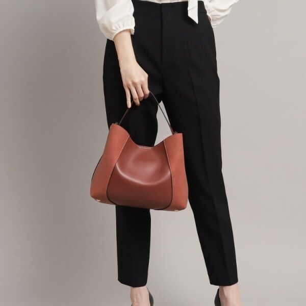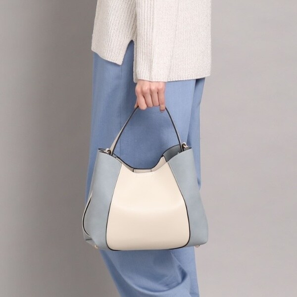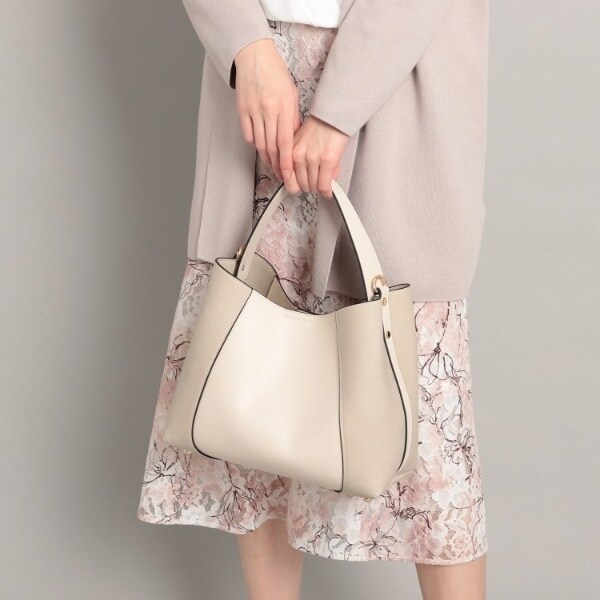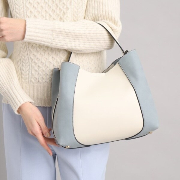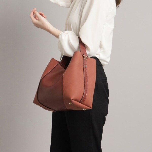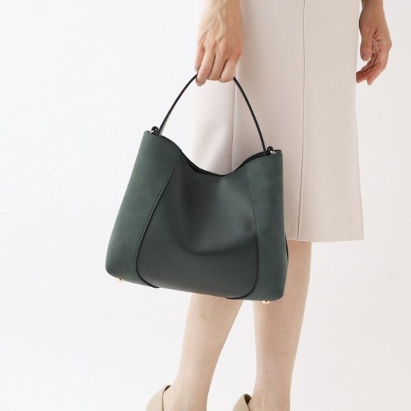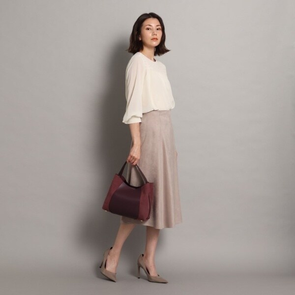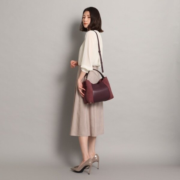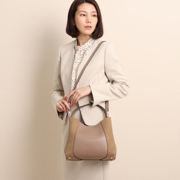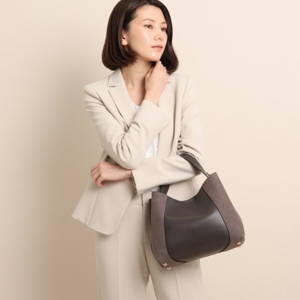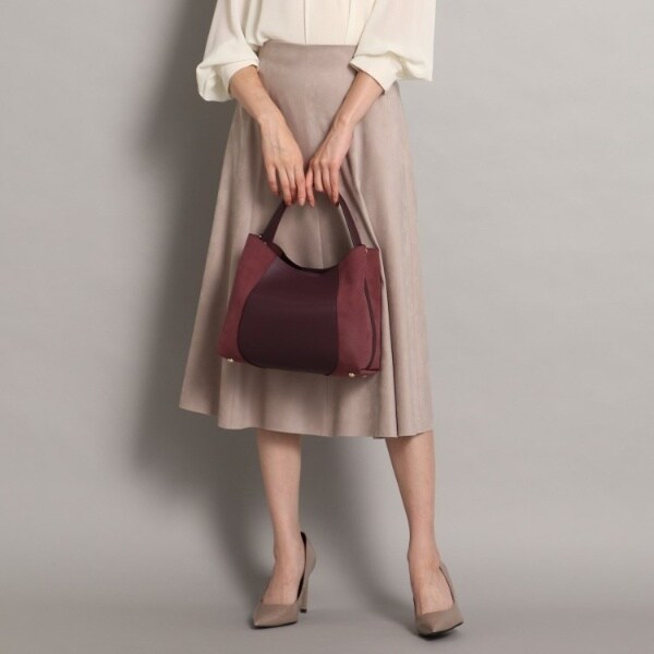 フェイクスエードでサイドを切り替え、単色ながらも表情豊かに仕上げたワンハンドルバッグ。