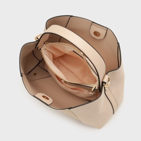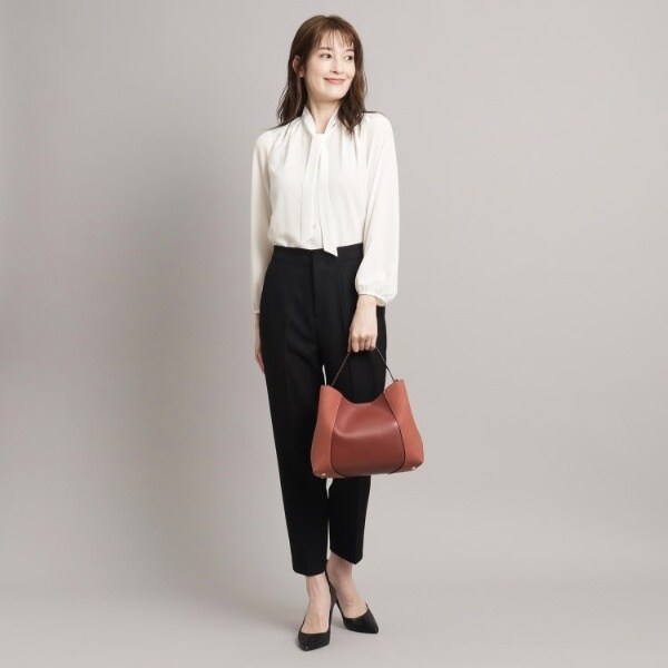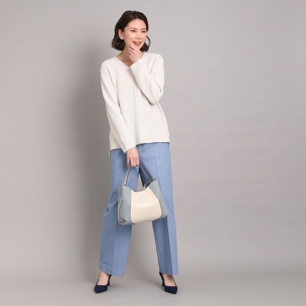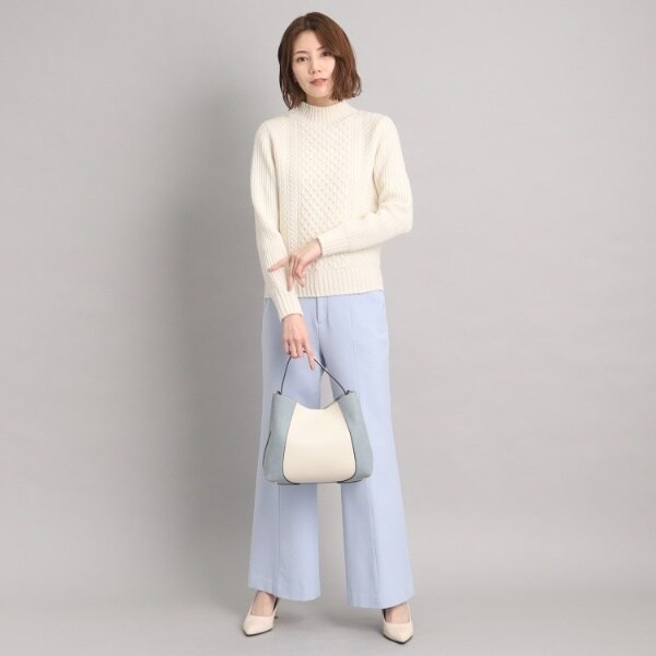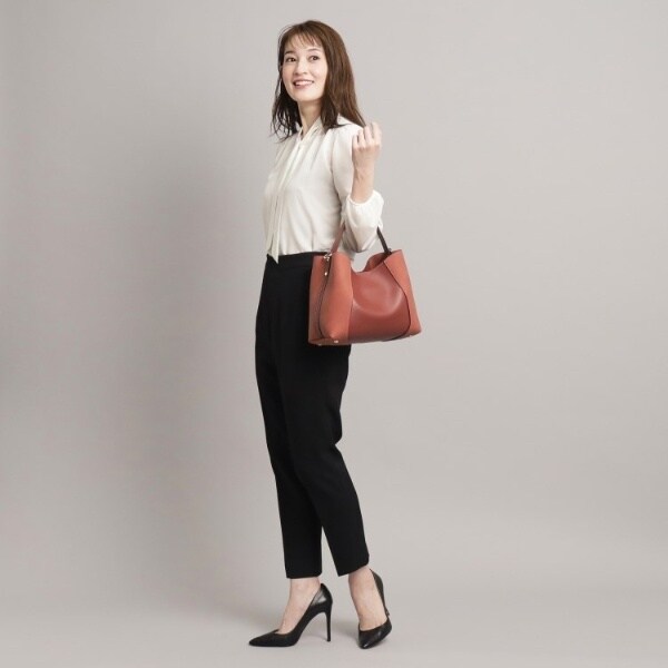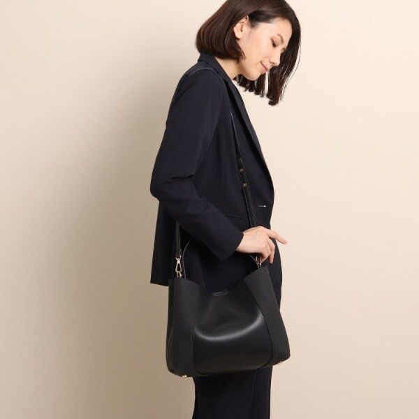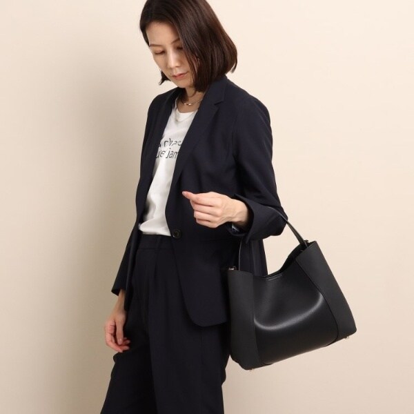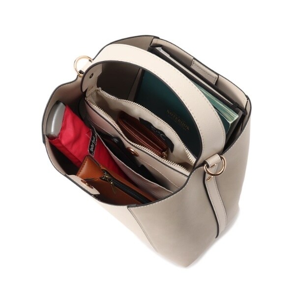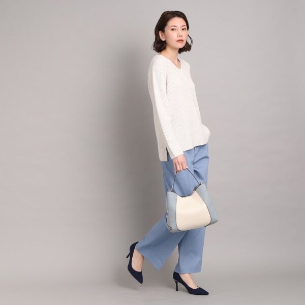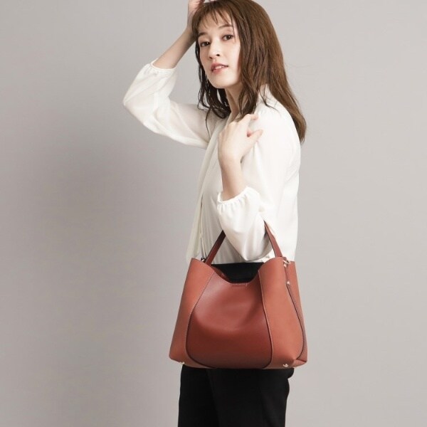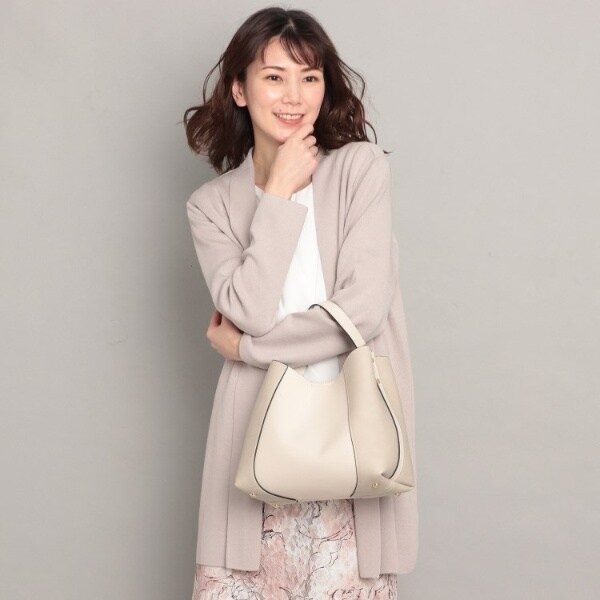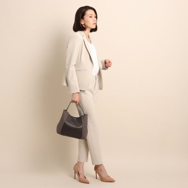 フェイクスエードでサイドを切り替え、単色ながらも表情豊かに仕上げたワンハンドルバッグ。
