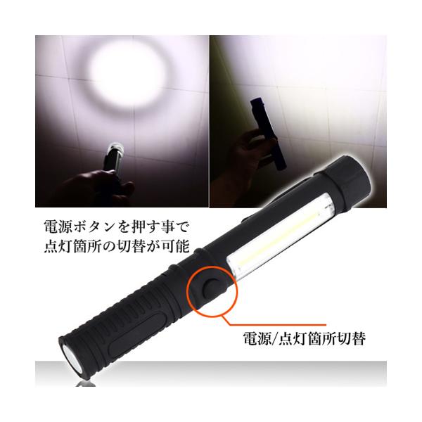 懐中電灯 LEDライト ハンディライト 300ルーメン 電池式 ハンドライト LED COB 超強力 マグネット 磁石 LED作業灯 ブラック (管理S) 送料無料