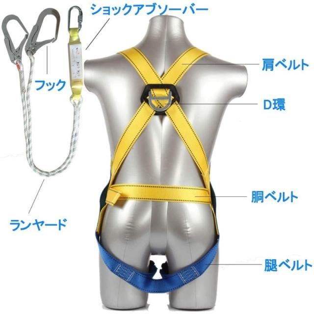 安全帯 墜落制止用器具 新規格適合 フルハーネス セット ハーネス型安全帯 伸縮式ダブルレランヤード付き 高所安全作業用 軽量 電気