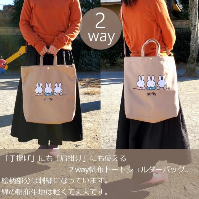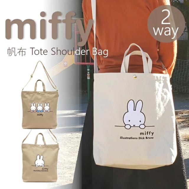 【メール便なら送料無料 】ミッフィー miffy ショルダーベルト付き帆布 2way 肩掛け ショルダーバッグ トートバッグ 帆布 トート バッグ 大きめ 大容量 おでかけ キャンバス生地 シンプル かわいい ギフト プレゼント キャンバス 厚め 布 布バッグ