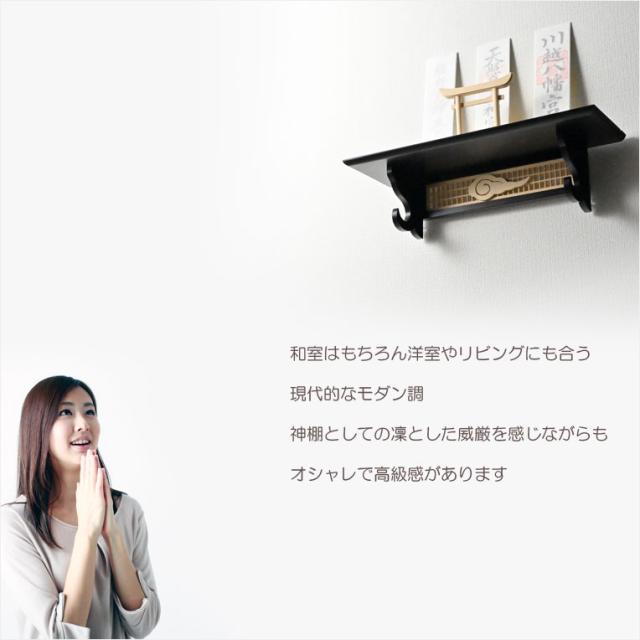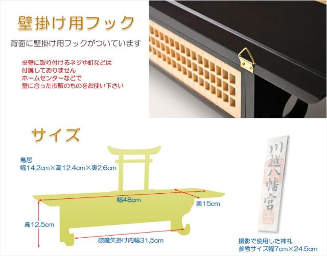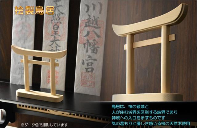 神棚【モダン神棚 桧鳥居付・壁掛けタイプ:常磐木(ときわぎ)ダーク・神具セット付】神道 神様 神札 お札 札入れ インテリア神棚 現代調神棚 破魔矢掛け 鳥居 送料無料