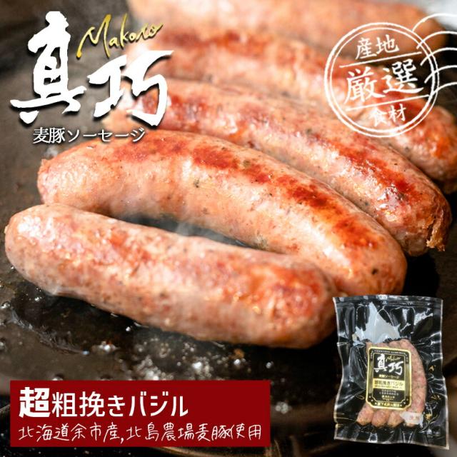 長沼あいす 真巧 麦豚ソーセージ 【 超粗挽きバジル 】 北海道限定 ギフト 豚肉 加工品 BBQ バーベキュー 燻製 お取り寄せ お土産 贈り物 内祝い お祝い お返し 結婚祝い 出産祝い 誕生日祝い バレンタイン