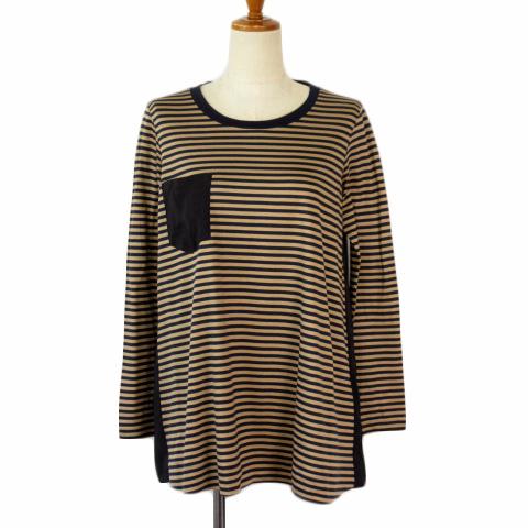 【中古】ブラーミン BRAHMIN カットソー プルオーバー ボーダー 長袖 38 ベージュ 黒 ブラック レディース
