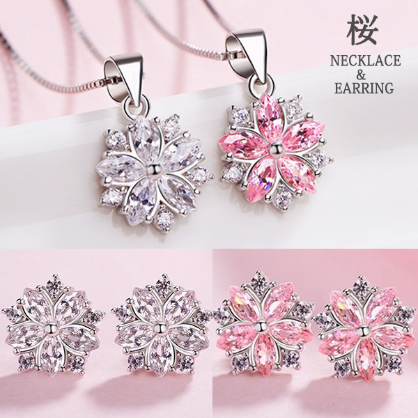ネックレス レディース さくら 桜 ピアス ピンクダイヤ シルバー925 プラチナ仕上げ 人気 春 妻 女性 誕生日 プレゼント バレンタイン ホワイトデー