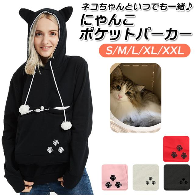 パーカー レディース おしゃれ 通販 にゃんこ ポケット トレーナー カブリ プルオーバー トップス フリース にゃんパーカー 猫耳 フード 森ガール 猫 小動物 ねこ ネコ アニマル 大きいサイズ フード付き