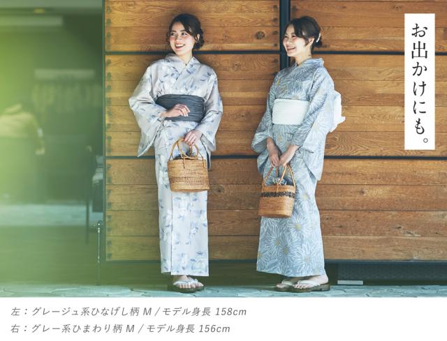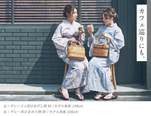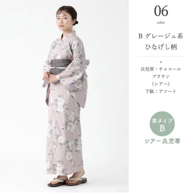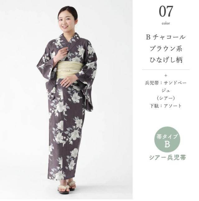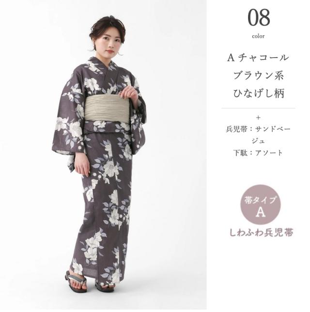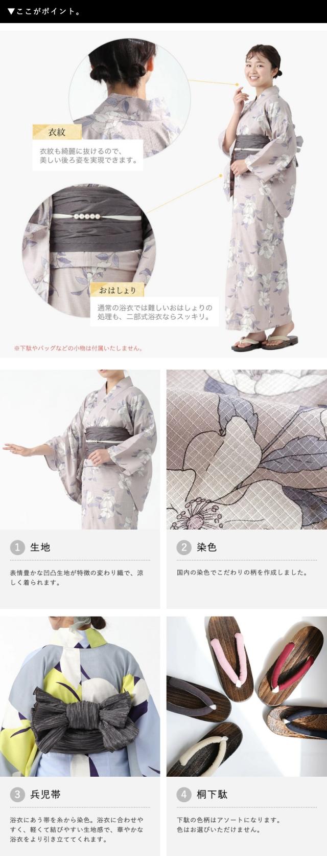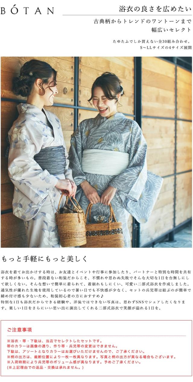 二部式浴衣 3点 セット 帯 下駄 花柄 簡単 二部式 セパレート 【 浴衣 綿 兵児帯 かわいい おしゃれ 椿 葡萄 ひなげし ひまわり 千鳥 グレージュ ブラウン 絞り風 浴衣 モダン 可愛い 】