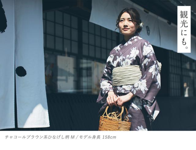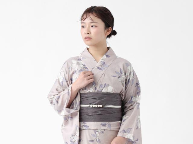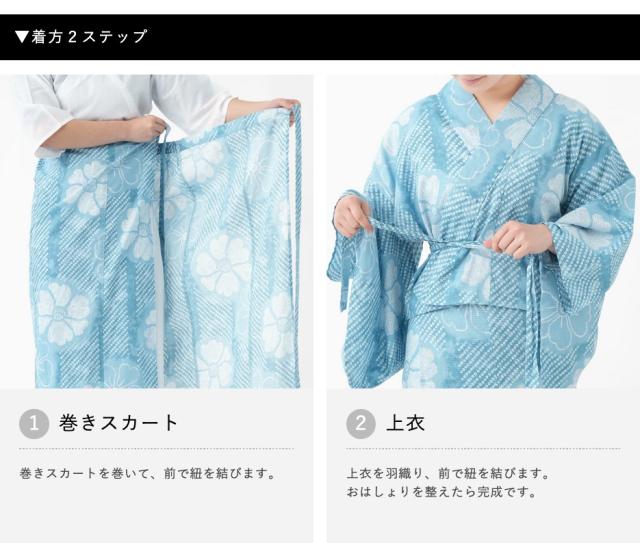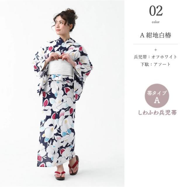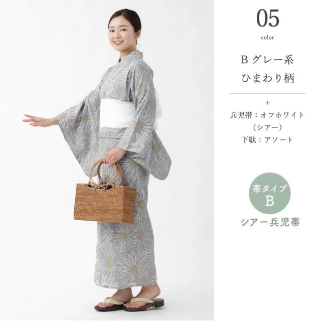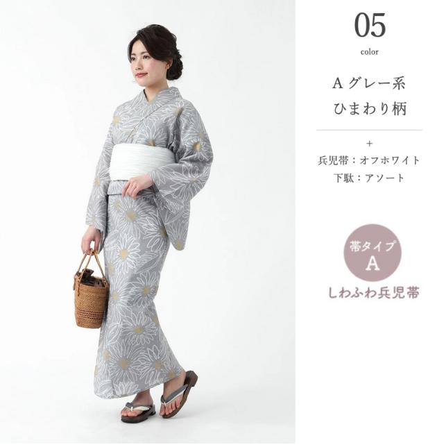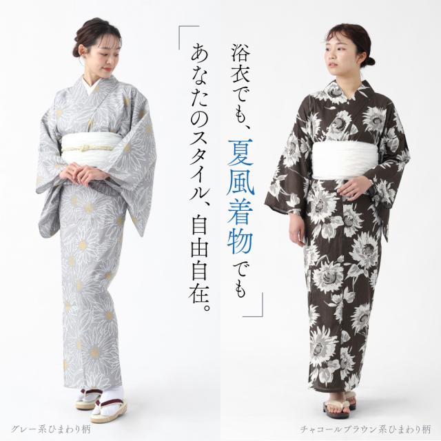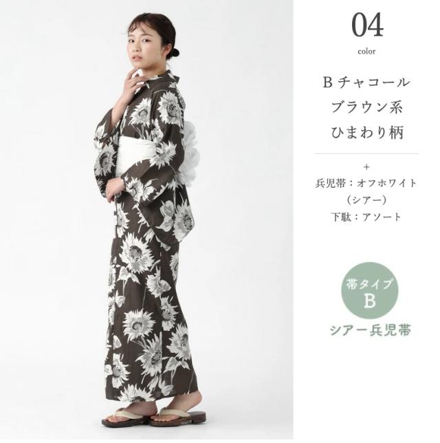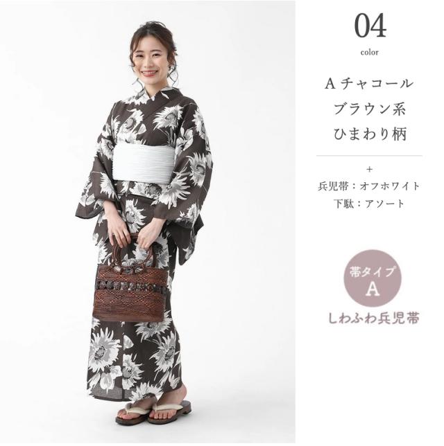 二部式浴衣 3点 セット 帯 下駄 花柄 簡単 二部式 セパレート 【 浴衣 綿 兵児帯 かわいい おしゃれ 椿 葡萄 ひなげし ひまわり 千鳥 グレージュ ブラウン 絞り風 浴衣 モダン 可愛い 】