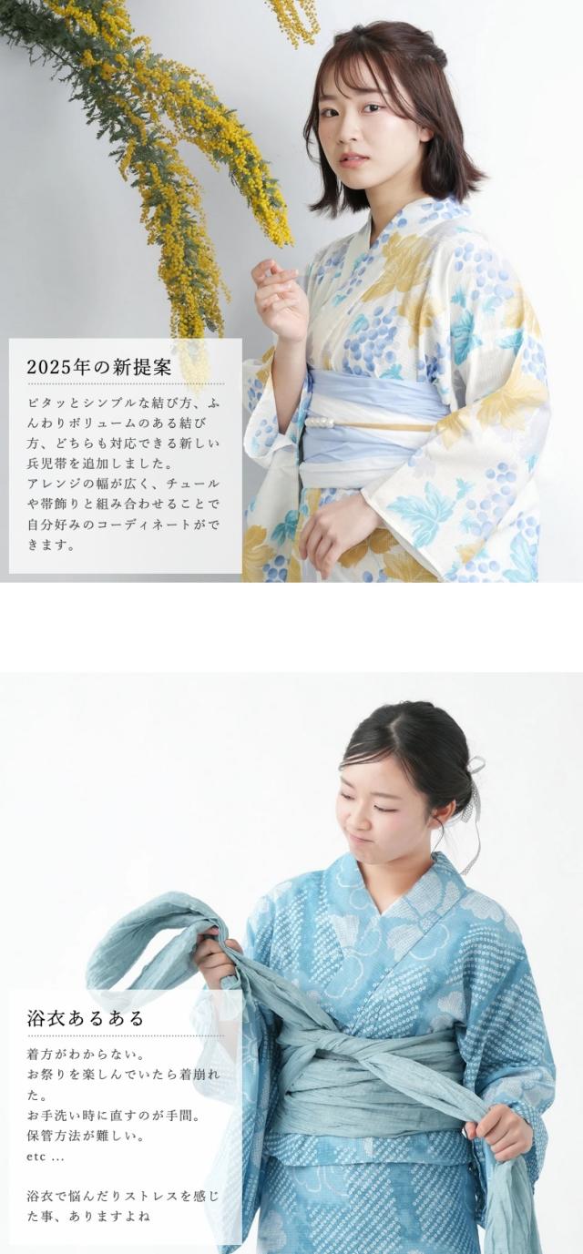 帯のカラーは画像の通り、作り帯・兵児帯の変更はできません。