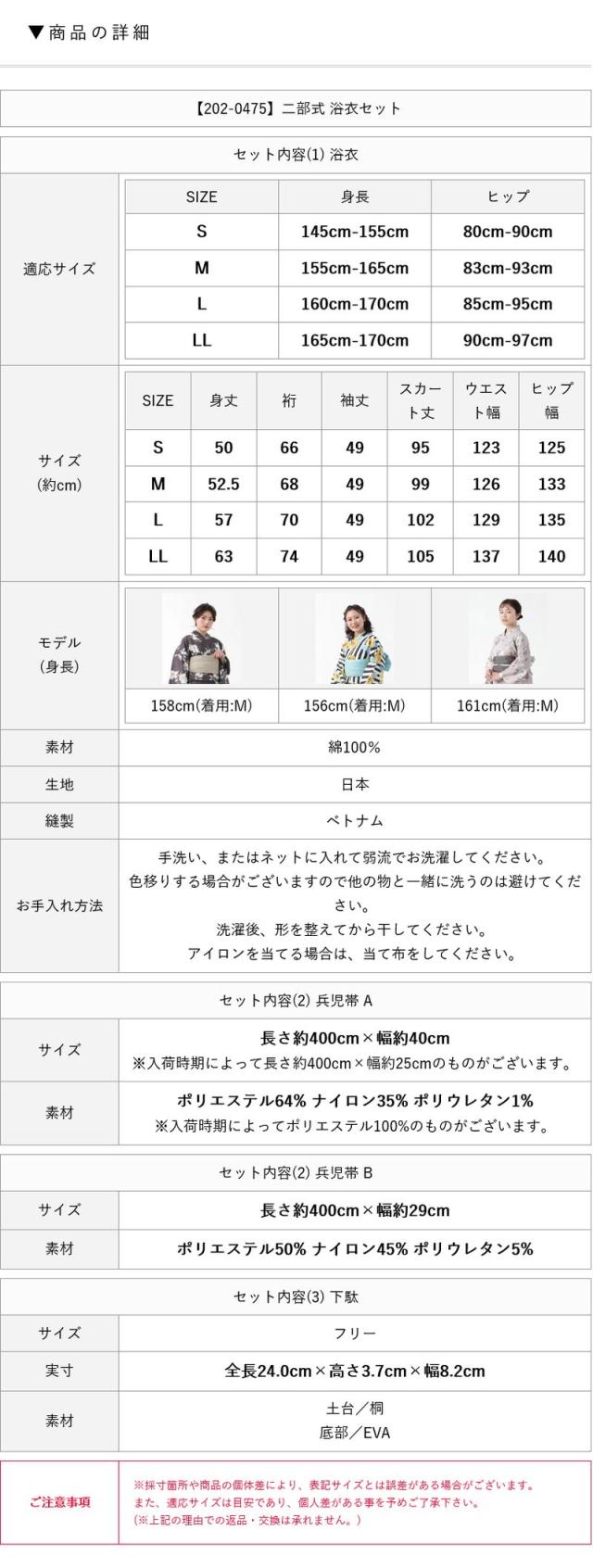 LL 身丈63cm 裄74cm 袖丈49cm スカート丈105cm ウエスト幅137cm ヒップ幅140cm