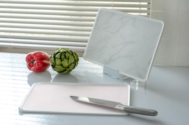 魚と野菜など食材によって使い分けることができるので衛生的です。表面にはガードが付いていますが、裏面はフラットにお使いいただけます。
