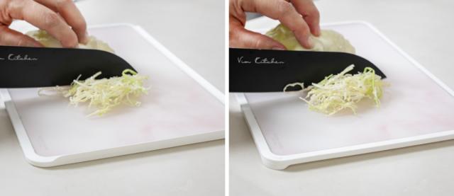 ガードが付いているので、食材から出た水分がこぼれるのを防ぎます。切った食材もこぼさずスムーズにお鍋などに移動できるので安心です。