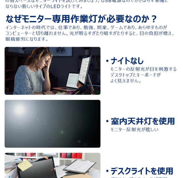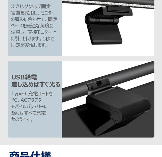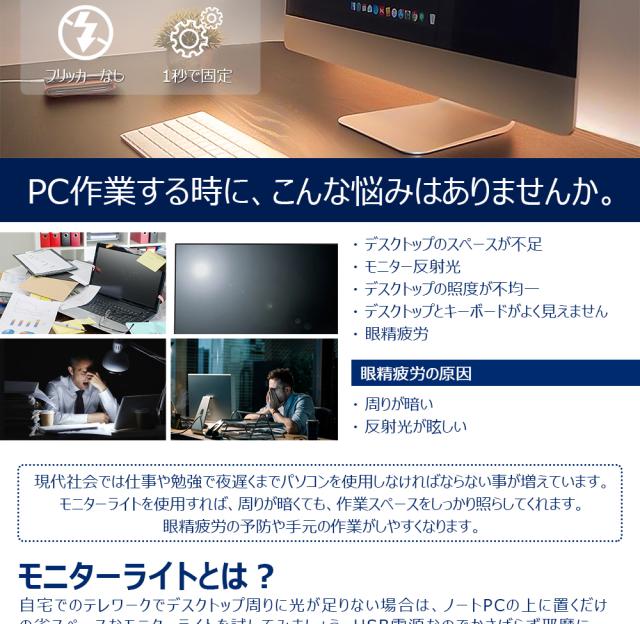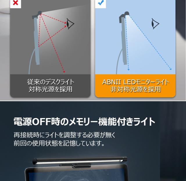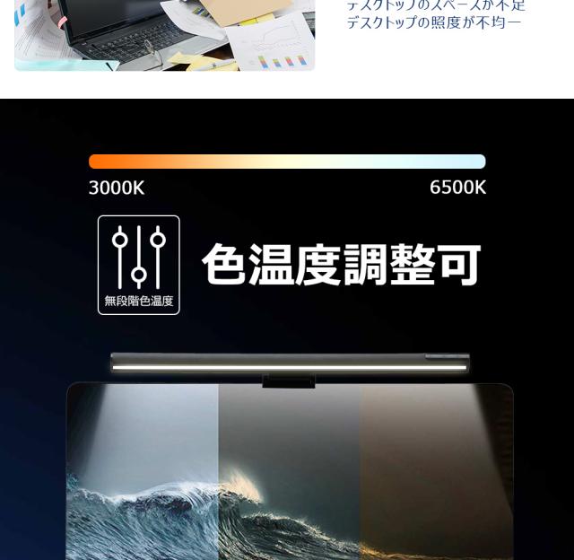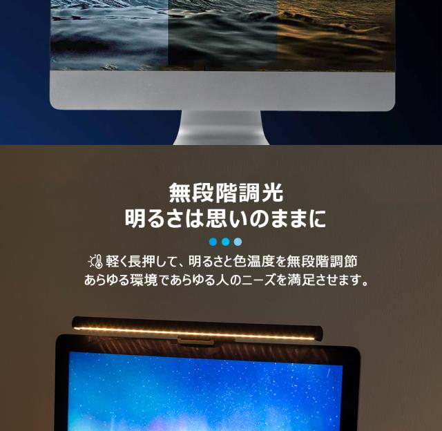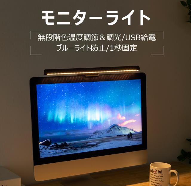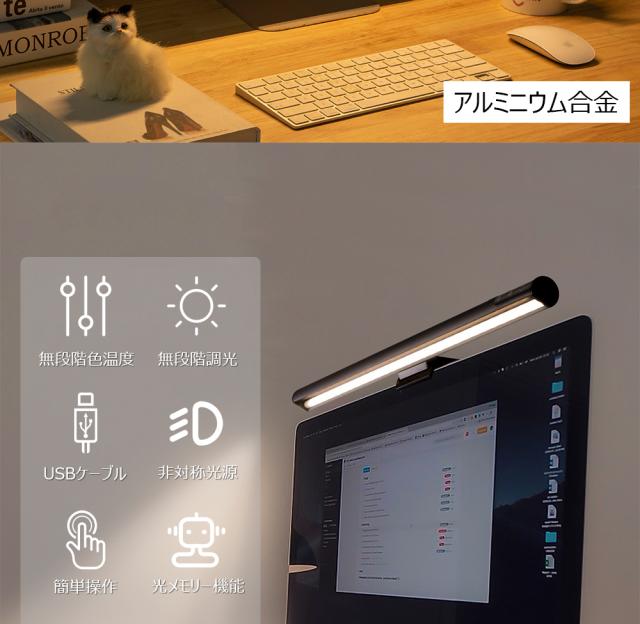 モニターライト 調光 モニター掛け式ライト LEDライト クリップ パソコンライト デスクライト 高演色 USB給電 三段階色温度 無段階調光 非対称光源 メモリー機能 卓上読書 ゲーム 残業 在宅 ワーク テレワーク 在宅勤務 ディスプレイ 目に優しい