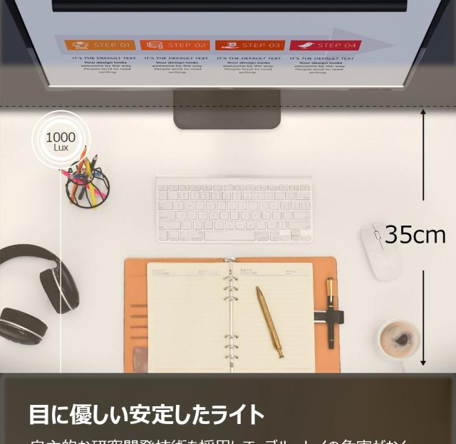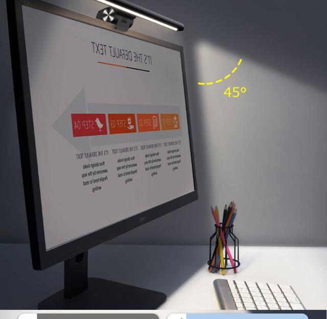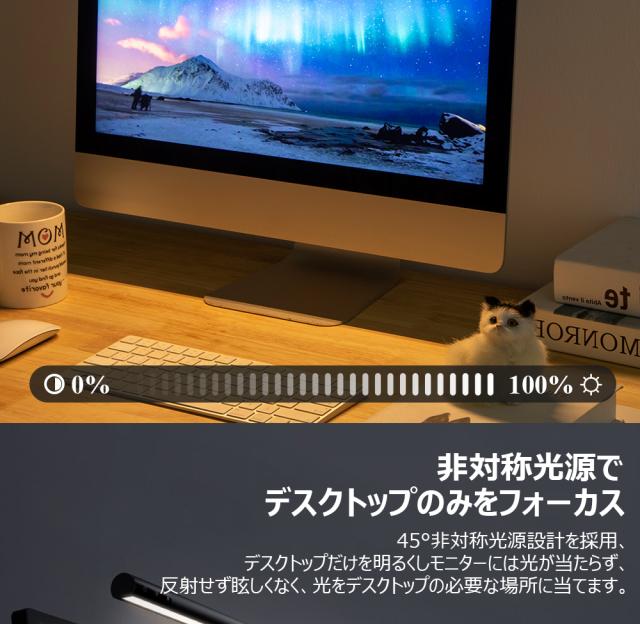 45°非対称光源設計を採用、デスクトップだけを明るくしモ二タ一には光が当たらず、反射せず眩しくなく、光をテスクトップの必要な場所に当てます。