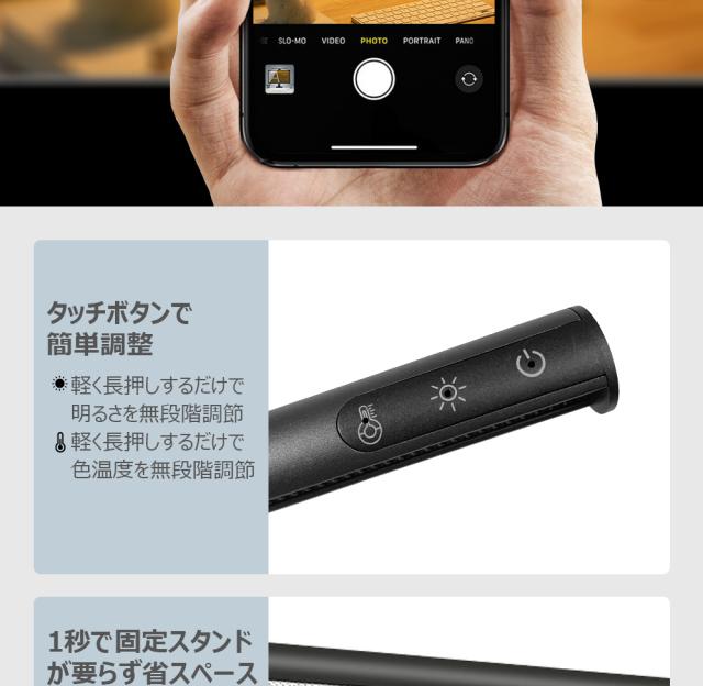 スタンドが要らず省スペ一ススプリングクリップ固定装置を採用し、モ二夕一の厚みに合わせて、固定ベ一スを最適な角度に調整し、直接モ二夕タ一上に引っ掛けます。1秒で固定を実現します。