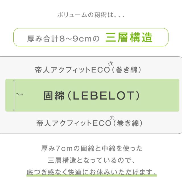 超祭りタイムセール 日本製 帝人アクフィット 超ボリューム 三層敷布団 シングル ロング 防ダニ 防臭 抗菌 速乾 吸汗 マットレス不要 布団 国産 三層 敷き布団 しき布団 敷布団 敷きふとん 【商品番号:10119093ki】