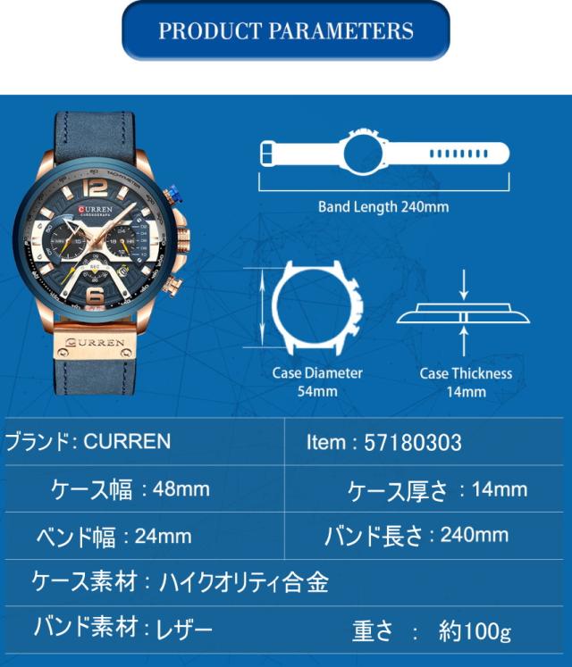 【送料無料・税込み】最新 CURREN 57180303 クロノグラフ 多針 日付 24時間 表示 ストップウォッチ 防水 性能 3 ATM 30 m 高機能 アナログ 腕時計 時計 watches ウォッチ メンズ 男 お洒落 かっこいい ランキング ギフト スポーツ カジュアル ビジネス 人気 流行 売れてる