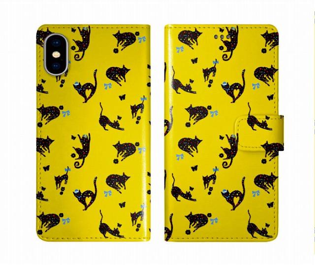 iPhone17 ケース スカラー スマホケース 手帳型 iPhone 16e ケース iPhone 16 15 Pro 14 Plus 13 SE 第3世代 アイフォンケース スマホカバー 全機種対応 手帳 ScoLar ドットにゃんこ リボン イエロー かわいい