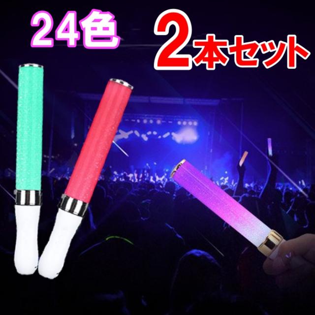 LED ペンライト 2本入り 24色 ライブ コンサート 高輝度 ライブスティック 単4 電池 お祭り イベント カラオケ パーティー 応援 サイリウム