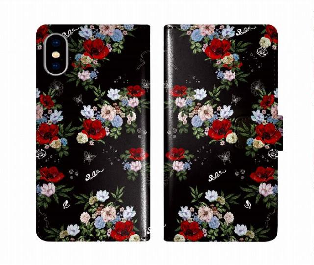 iPhone 16e ケース スカラー スマホケース 手帳型 iPhone17 ケース iPhone16 Pro 15 Plus 14 Pro Max 13 SE 第3世代 アイフォンケース スマホカバー 全機種対応 手帳 ScoLar フラワー チョウ ブラック総柄 ダイアリー かわいい
