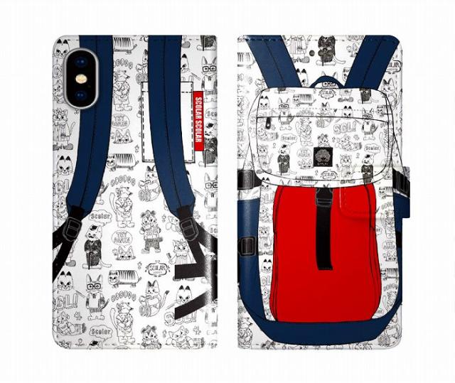 iPhone16 ケース スカラー スマホケース 手帳型 iPhone17 ケース iPhone 16e 16 15 14 Plus Pro Max 13 SE 第3世代 アイフォンケース スマホカバー 全機種対応 手帳 ScoLar レッド リュックサック ネコ 猫いっぱい