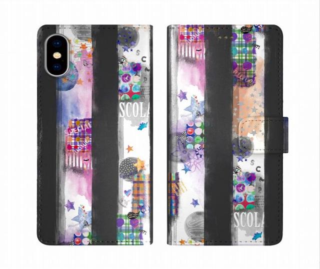 iPhone16 ケース スカラー スマホケース 手帳型 iPhone17 ケース iPhone 16e 16 15 14 Plus Pro Max 13 SE 第3世代 アイフォンケース スマホカバー 全機種対応 手帳 ScoLar ブラック ストライプ 手描き風 スター