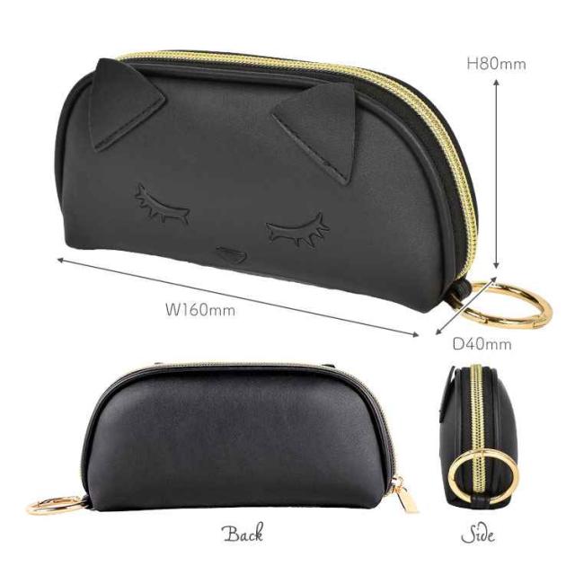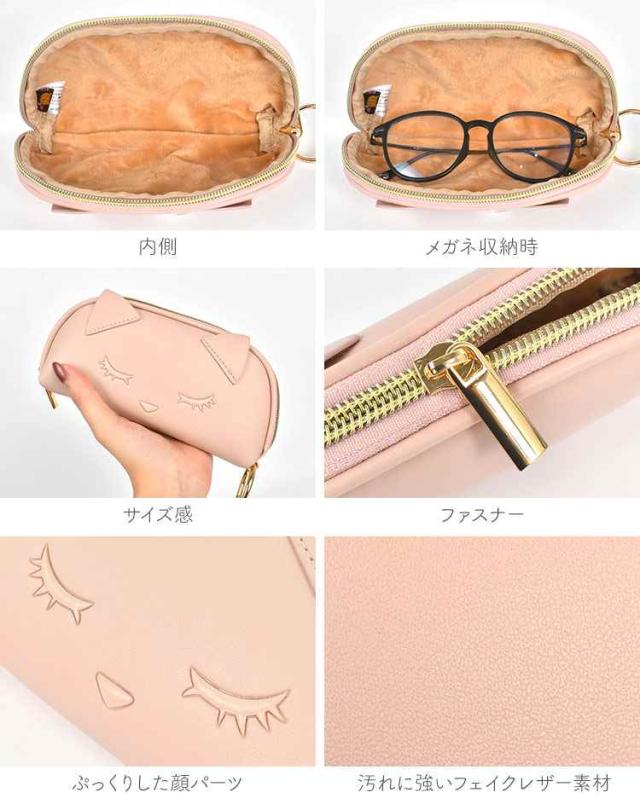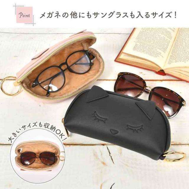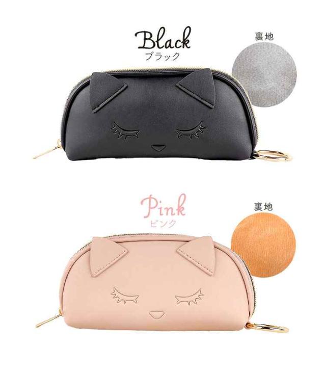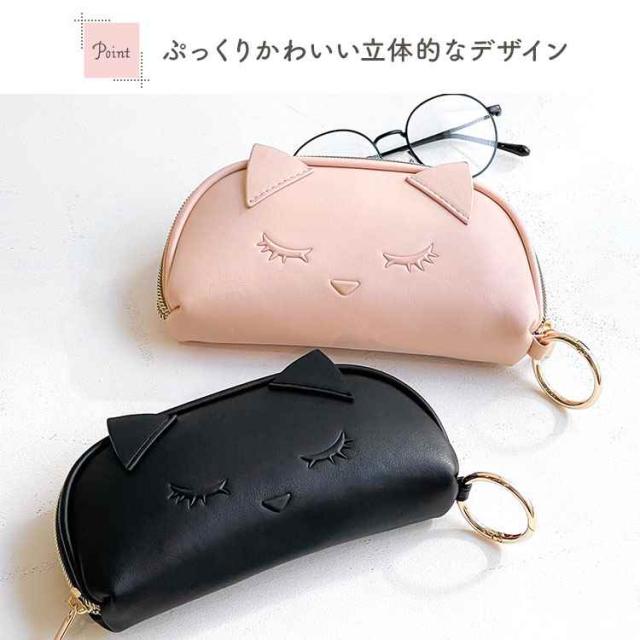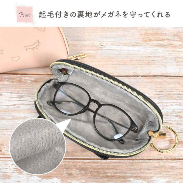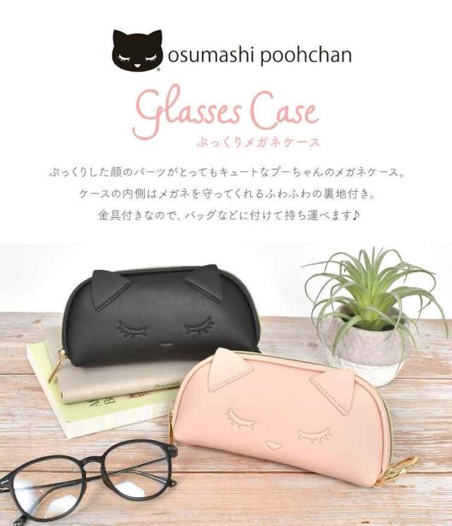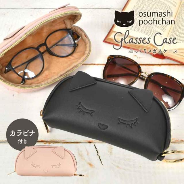 メガネケース おすましプーちゃん 眼鏡ケース ストラップ ファスナー カラビナ めがねケース ソフト 猫 ねこ かわいい おしゃれ レディース ねこ柄 メガネポーチ メガネ入れ 大きめ 大人 女性 女子 通勤 通学 サングラス 持ち運び キャラクター 猫モチーフ黒 ブラック ピンク