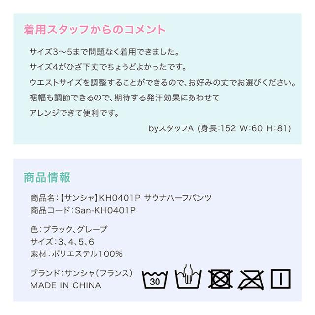 ※ 長さが違うサンシャのサウナパンツシリーズ 用途やお好みに合わせて、お選びください。