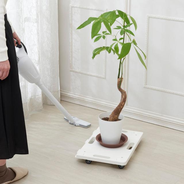 リビングなどに置いている空気清浄機や加湿器・ヒーターなどの家電や観葉植物を上に載せれば、日々の掃除も持ち上げたり、引きずることなくサッと移動ができるので便利です。ナチュラルなホワイトカラーなので、お部屋に置いていても目立たずインテリアに溶け込みます。