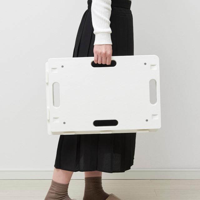 各4方向に持ち運び便利な丸型の取っ手付きです。小型で重さが1台あたり約1kgと軽量設計なので、女性の方でも片手で持ち運べます。