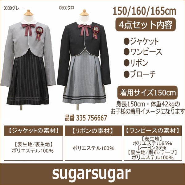 フォーマル 卒業式スーツ アンサンブル 150cm 160cm 165cm 0300グレー 0500クロ 335756667 sugarsugar(51